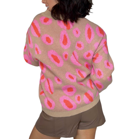 Women’s Pink & Coral Leopard Print V-Neck Sweater