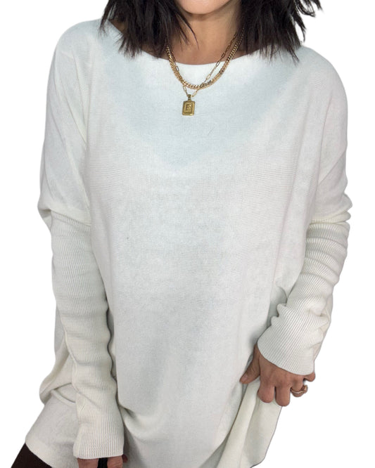 Oversized Boat Neck Tunic Top