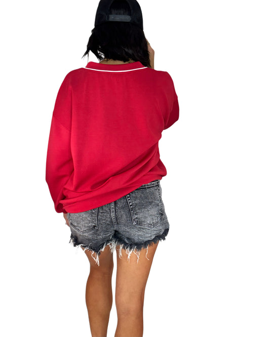 Red Tipped V-Neck Knit Sweater