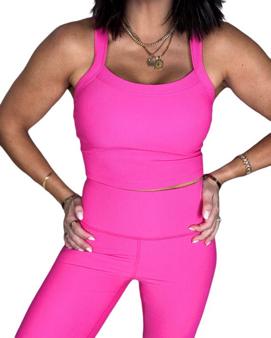 Hot Pink Ribbed Activewear Set